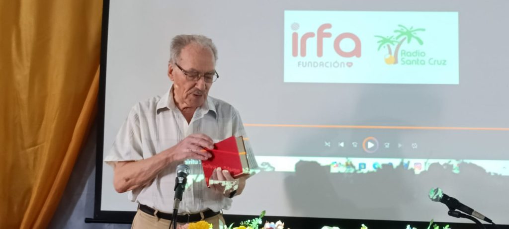 La jornada inició con una Misa de Aniversario presidida por el Padre Javier Velasco SJ, en la que se agradeció el legado sembrado por generaciones de educadores, comunicadores y líderes comunitarios. Con la entonación del Himno Nacional, se dio paso a las palabras de Sergio Montes, Director General de Fundación IRFA – Radio Santa Cruz, quien destacó la trayectoria de la institución como “una escuela de esperanza, una radio que abraza y una comunidad que transforma”.