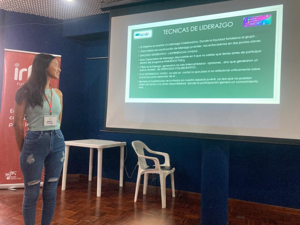 Yamile Ardaya Ortiz, de Generación 2020, coach de liderazgo, oratoria y activista ambiental, inició la jornada con una exposición sobre el liderazgo, la participación de los jóvenes y los desafíos desde la visión juvenil.
